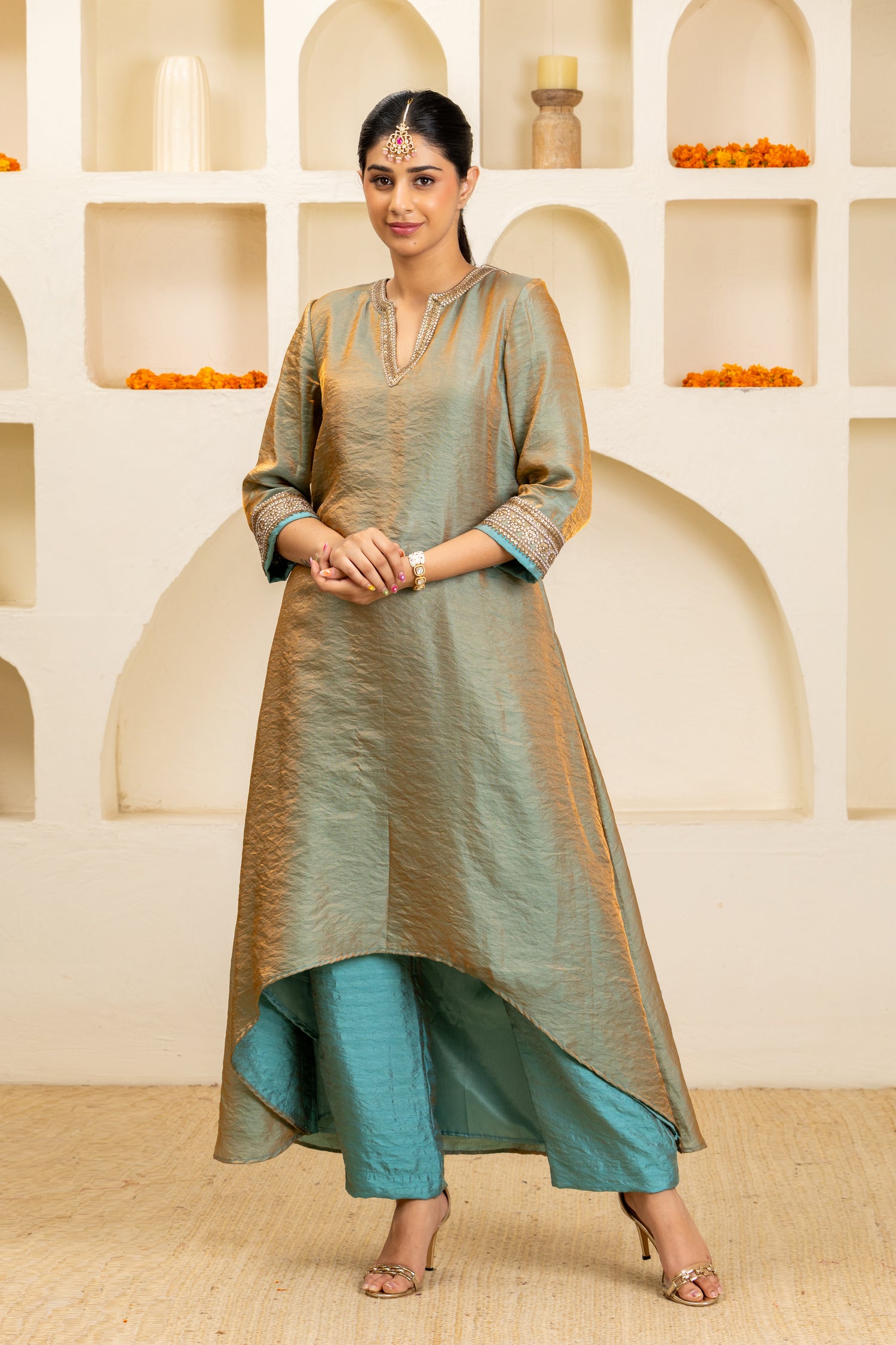 Light Blue Half-and-Half Short Kurta and Pant Set