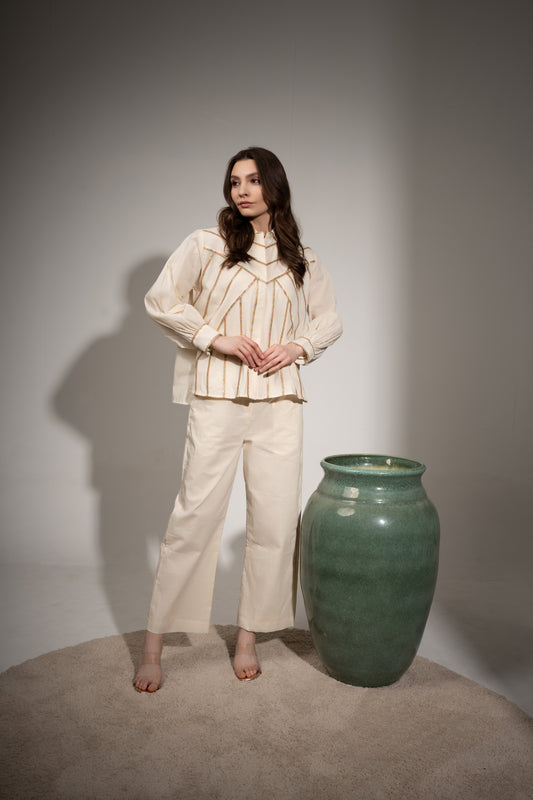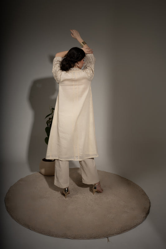 A-Line Embroidered Kurta with Cotton Linen Pants Set