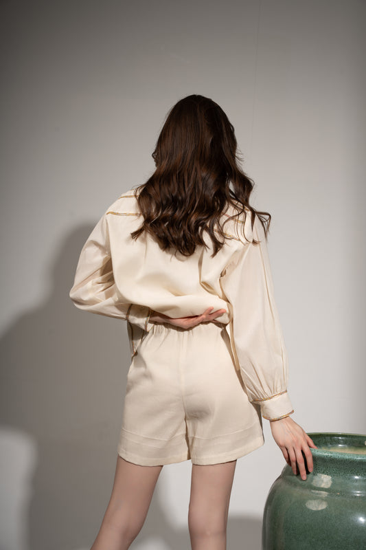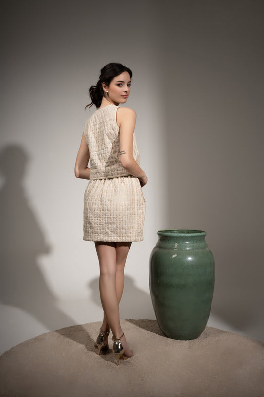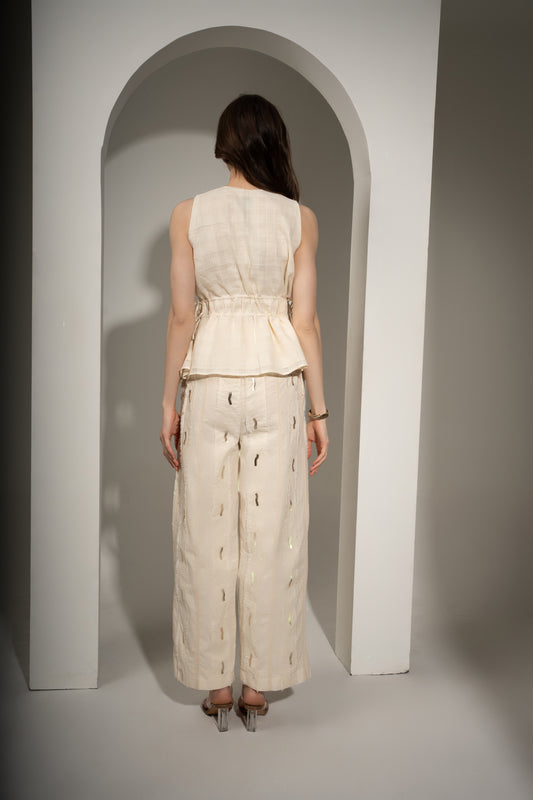 Dobby Sleeveless Drawstring Top and Textured Pant Set