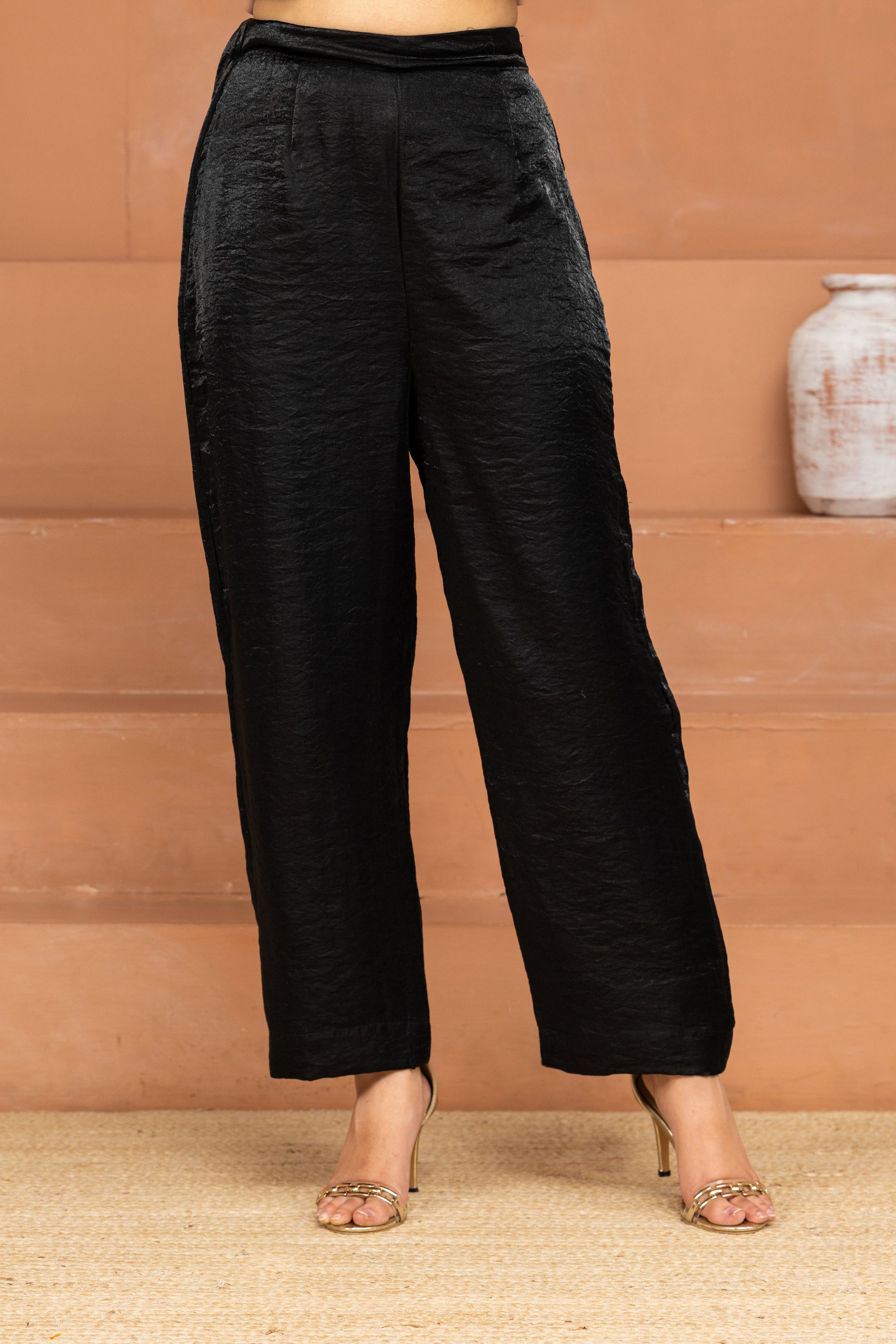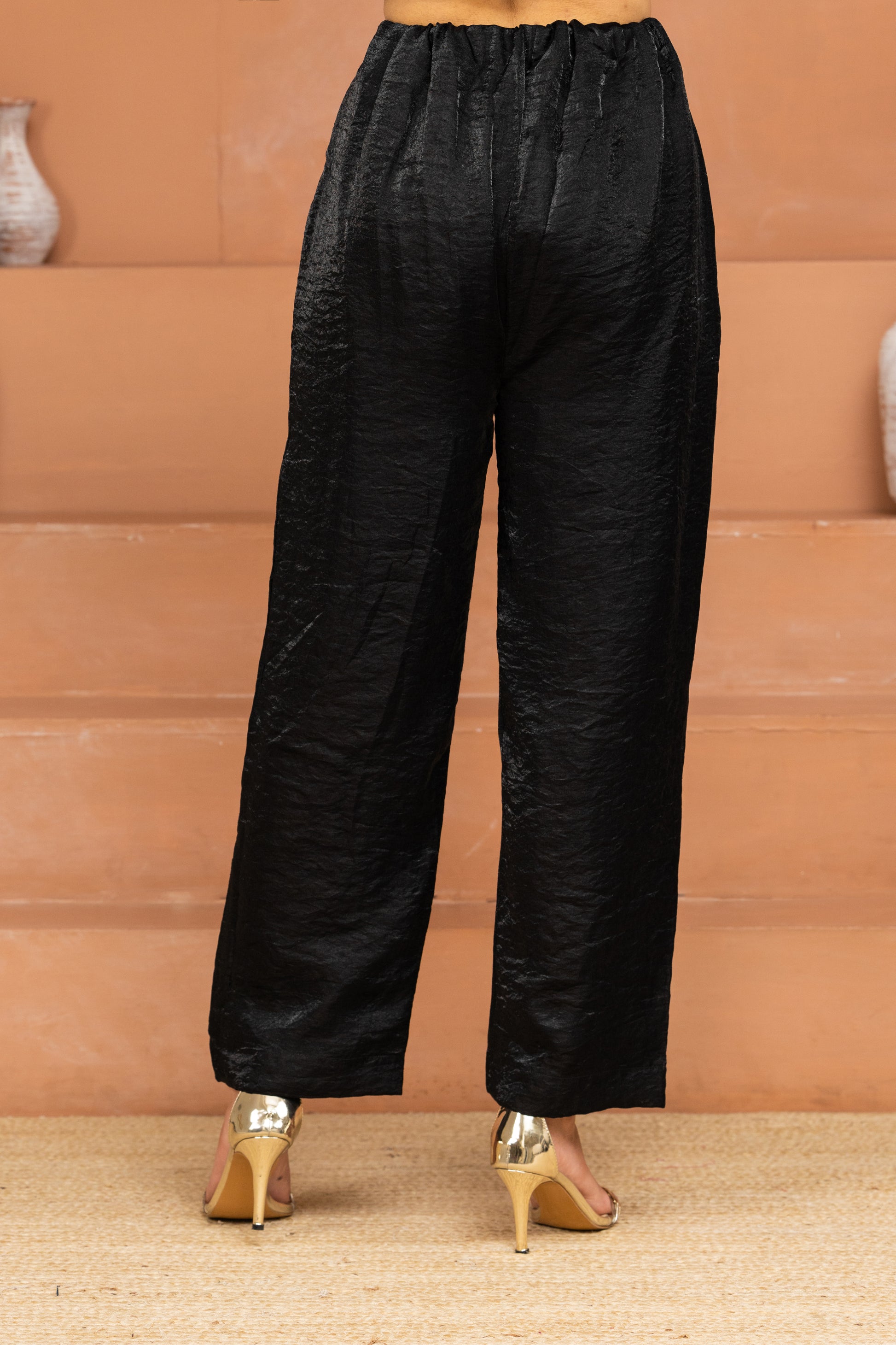 Black Panelled Short Kurta and Pant Set