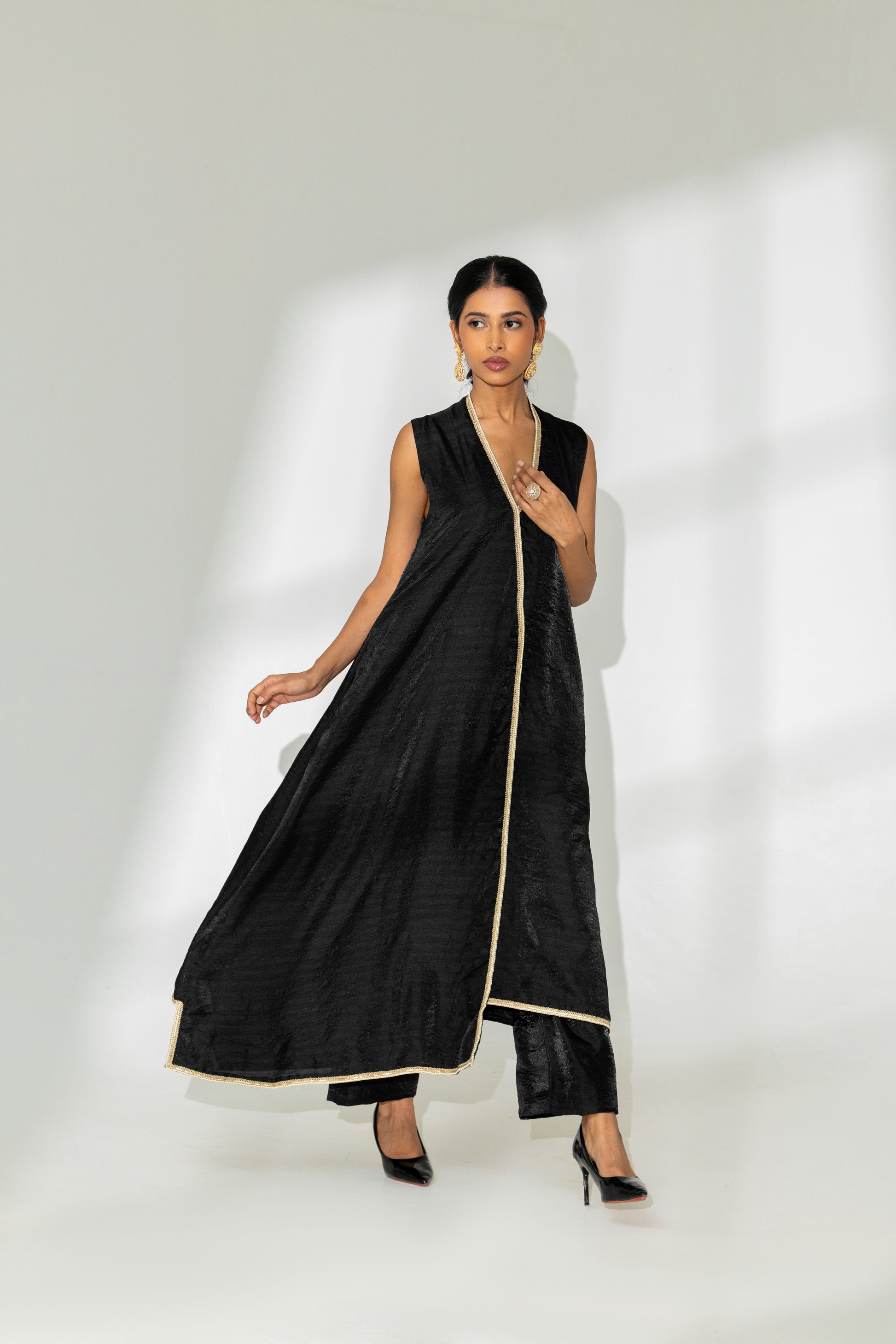 Black Sleeveless Asymmetric Kurta and Pant Set