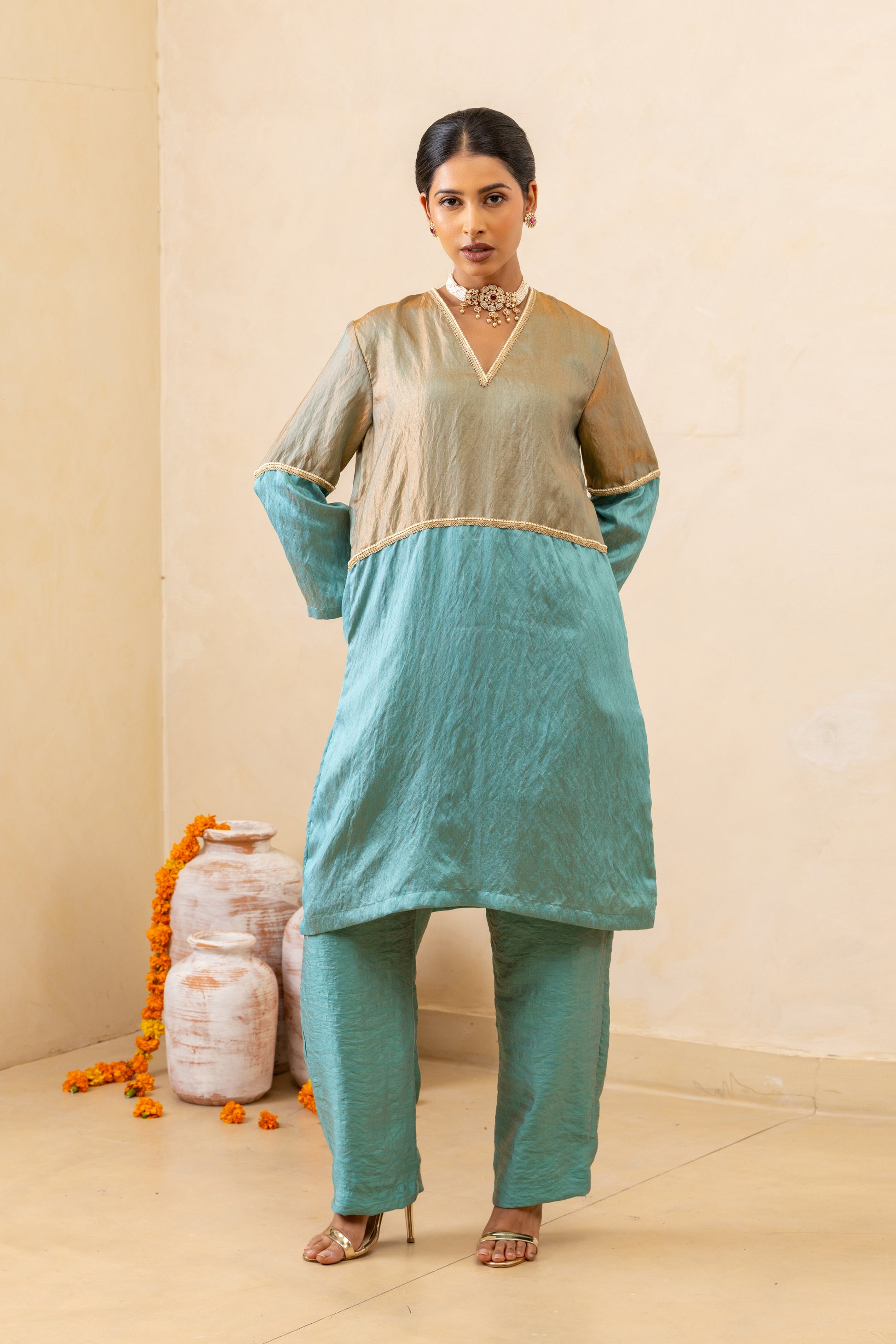 Light Blue Half-and-Half Short Kurta and Pant Set