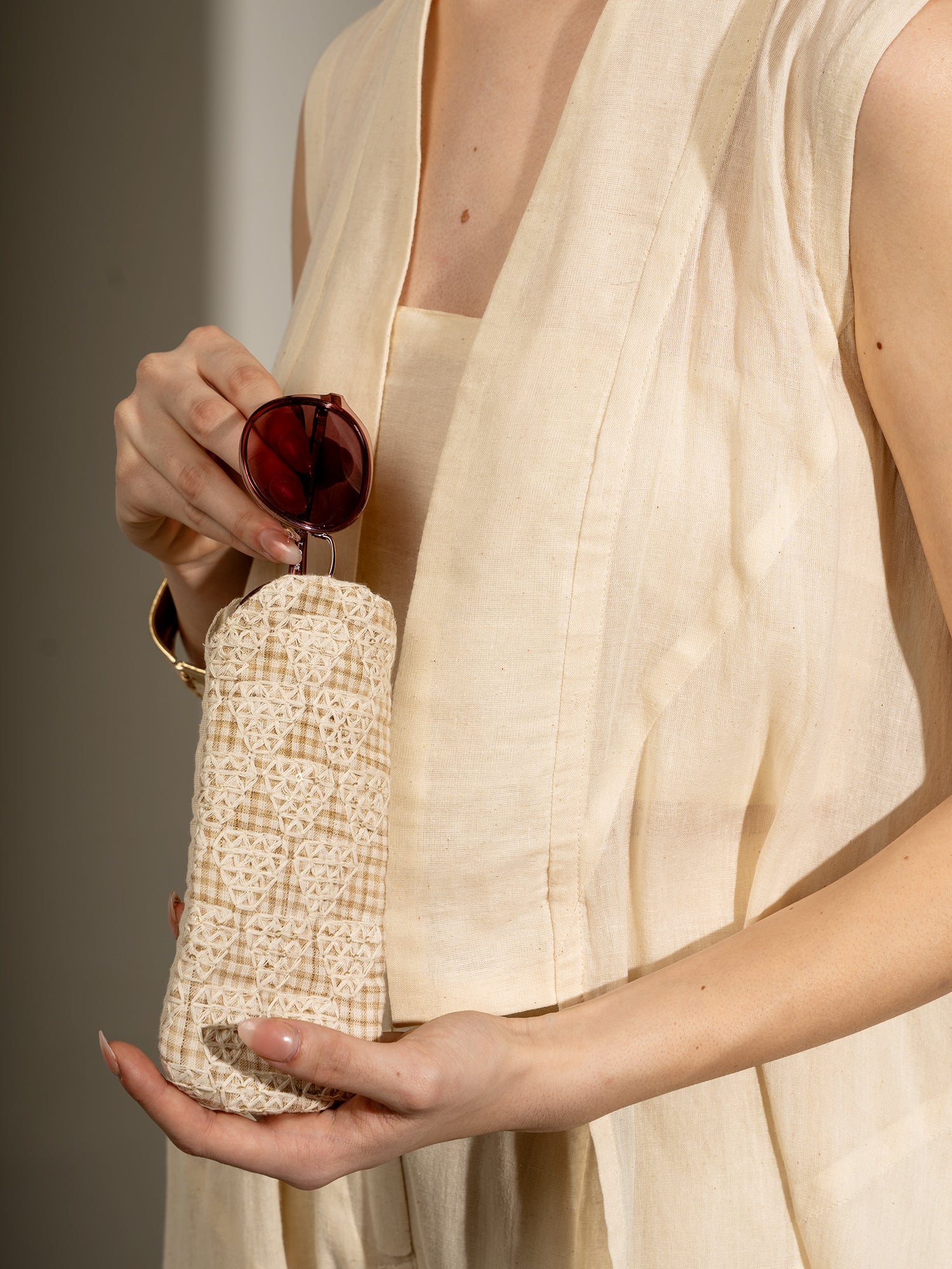 Our sustainable sunglasses cases are thoughtfully crafted from fabric off-cuts, giving new life to production waste. Lightly cushioned for extra protection and fitted with a secure Velcro closure, these cases are designed to keep your sunglasses safe wherever you go. They’re compact, washable, and slide easily into any size of bag—perfect for everyday use with a mindful twist.